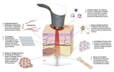 Acceleration of tissue repair and wound healing. This equates to a total treatment dosage of 400 to 4000 joules. The first is that the penetrating light quickly relieves pain.